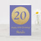 Bonne carte de Parties scintillant 20e anniversaire et or avec nom personnalisé. Pour plus de personnalisation, cliquez sur le bouton "Customiser" et utilisez notre outil de conception pour modifier ce modèle.