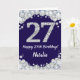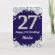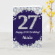 Bonne carte de Parties scintillant bleu marine et argent 27th Birthday avec nom personnalisé. Pour plus de personnalisation, cliquez sur le bouton "Customiser" et utilisez notre outil de conception pour modifier ce modèle.