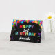 Joyeux 3e anniversaire Ballons colorés Confetti Carte Noir avec nom personnalisé. Pour plus de personnalisation, cliquez sur le bouton "Customiser" et utilisez notre outil de conception pour modifier ce modèle.