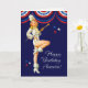 Joyeux anniversaire, Amérique. 4 juillet carte de voeux personnalisable avec une illustration retro pin-up des années 1950. Artiste : Al Buell. Cartes de correspondance, faveurs et cadeaux disponibles dans les fêtes | 4 juillet Catégorie de notre magasin.