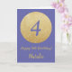 Carte Joyeux 4ème anniversaire et paillettes dorées avec nom personnalisé. Pour une personnalisation supplémentaire, veuillez cliquer sur le bouton "Personnaliser" et utiliser notre outil de conception pour modifier ce modèle.