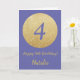 Carte Joyeux 4ème anniversaire et paillettes dorées