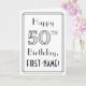 L'avant de ce luxueux design de cartes de voeux art déco des années 1920-1930 a le message "Happy 50th Birthday" et un nom de destinataire personnalisable. Le numéro "50th" sur le devant a un look soigné doublé, et il y a aussi une frontière multi-lignes. L'intérieur comporte un message de voeux d'anniversaire personnalisable, ou peut-être pourrait-il être effacé et laissé vide si un message doit être écrit à la main à la place. Une carte de voeux d’anniversaire élégante et personnalisée comme celle-ci pourrait être envoyée pour célébrer le cinquantième anniversaire de quelqu’un. [~Z0000641]