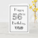L'avant de cette élégante carte de vœux à thème d'anniversaire inspirée de l'art déco des années 1920-1930 comporte le message « Joyeux 56e anniversaire » et un nom de destinataire personnalisable. Le nombre « 56e » sur le devant a un style élégant et linéaire, et il y a également une bordure à plusieurs lignes. L'intérieur comprend un message de vœux d'anniversaire modifiable, ou pourrait éventuellement être vidé et laissé vide si un message doit être écrit à la main à la place. Une carte de vœux d'anniversaire luxueuse et personnalisée comme celle-ci pourrait être utilisée pour célébrer le cinquante-sixième anniversaire de quelqu'un.