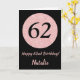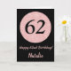 Carte Joyeux 62e anniversaire Noir et Rose Or rose