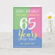 Célébrez un anniversaire avec une carte personnalisée indiquant le nom du récipiendaire, le nombre d'années et la date. Ajoutez également un message à l'intérieur. Carte d'anniversaire pour 65 ans.
