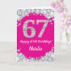 Carte d'anniversaire 67 ans rose chaud et argent avec nom personnalisé. Pour une personnalisation plus poussée, veuillez cliquer sur le bouton "Personnaliser" et utiliser notre outil de conception pour modifier ce modèle.