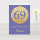 Bonne 69e anniversaire Very Peri et Gold Parties scintillant Card avec nom personnalisé. Pour plus de personnalisation, cliquez sur le bouton "Customiser" et utilisez notre outil de conception pour modifier ce modèle.