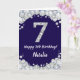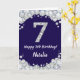 Joyeuse carte de Parties scintillant bleu marine et argent 7 Anniversaire avec nom personnalisé. Pour plus de personnalisation, cliquez sur le bouton "Customiser" et utilisez notre outil de conception pour modifier ce modèle.