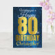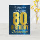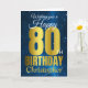 Une magnifique carte d'anniversaire à effet bleu et or. Ce design thématique espace est la meilleure façon de souhaiter un "joyeux 80ème anniversaire" à quelqu'un. Personnalisez avec notre propre nom et message personnalisé. La typographie or et blanc sur un arrière - plan de l'univers.