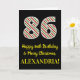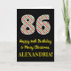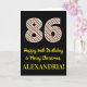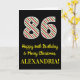 Le recto de cette carte de voeux simple et amusante, sur le thème de Noël et d'anniversaire du 25 décembre, comporte un grand numéro "86" avec un motif rayé rouge, blanc et vert, ainsi que le message "Happy 86th Birthday & Joyeux Noël", et un nom personnalisable. L'arrière - plan du devant est noir de couleur. L'intérieur comporte un message d'anniversaire personnalisé, ou pourrait être effacé et laissé vide si un message doit être écrit à la main à la place. Une carte d’anniversaire personnalisée comme celle-ci pourrait être une façon amusante d’envoyer un message pour célébrer le quatre-vingt-sixième anniversaire de quelqu’un qui tombe aussi le jour de Noël (le 25 décembre). [~Z0000405]