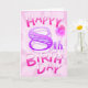 Bonne carte d'anniversaire 8. Couleur : La plupart du temps rose et violet. Salutation à l'intérieur : Joyeux anniversaire, que ce jour soit toujours spécial à retenir.