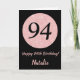 Carte Joyeux 94e anniversaire Noir et Rose Rose Or