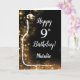 Bonne 9e anniversaire Black and Gold Parties scintillant carte à vin avec nom personnalisé. Pour plus de personnalisation, cliquez sur le bouton "Customiser" et utilisez notre outil de conception pour modifier ce modèle.