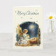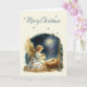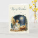 Cette charmante carte de Noël met en valeur un ange doux qui regarde en émerveillement la scène humble de la nativité. Avec la paille sous ses genoux et l’étoile de Bethléem brillant au-dessus, la présence paisible de l’ange saisit la sérénité de la saison. Deux agneaux se reposent tranquillement à proximité, leur regard reflétant la sainteté de cette nuit sacrée. Sur le devant, on peut lire "Joyeux Noël", offrant un accueil simple et joyeux pour tous. A l'intérieur, un message de paix et de bénédictions exprime des voeux chaleureux pour un Noël rempli d'amour et de sérénité, faisant de cette carte un choix parfait pour quiconque chérit les moments tranquilles et sacrés de la fête.
