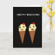 Joyeuse carte d'anniversaire avec de la crème glacée cône sur le couvercle. Cette carte peut aller bien avec une carte cadeau à leur endroit préféré de crème glacée. Art par abondelovetrip
