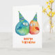 Adorable Carte d'anniversaire joyeuse avec 2 petits oiseaux dessinés à la main portant des casquettes d'anniversaire. Vierge à l'intérieur, prête pour la personnalisation de votre texte et/ou photo. © HomeStyle Design Studio