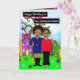 Belle carte d'anniversaire colorée pour soeurs. Des soeurs dessinées à la main, serrées de jolies fleurs blanches colorées, un village d'arbres et de folk.