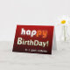 Cette carte d'anniversaire joyeuse et lumineuse avec arrière - plan rouge et lettrage blanc et orange est une carte de voeux d'affaires parfaite pour souhaiter à vos clients un joyeux anniversaire.