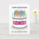 Image de dessin animé d'un gâteau d'anniversaire recouvert de bougies allumées. Les mots "Joyeux anniversaire à une soeur spéciale" accompagnent l'image.