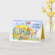 Des salutations d'anniversaire joyeuses avec deux amies achetant des bouquets de fleurs fraîches à un chariot de marché de fermiers avec un petit chien chiot et des oiseaux bleus volant dans le ciel main illustré d'aquarelle. A l'intérieur, une nuance coordonnée de jaune vif avec une petite fleur rouge et du texte que vous pouvez modifier pour répondre à vos besoins.