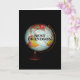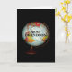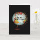 Un globe antique lumineux-coloré, photographié sur un fond noir, est le sujet de mon "joyeux anniversaire au meilleur petit-fils sur terre !" carte d'anniversaire. Le "meilleur petit-fils" en texte noir sur le visage du globe accomplit l'image avant de la carte.