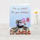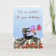 Carte Joyeux anniversaire, caniche noir Excited dans un