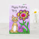Joyeux Birthday Whimsical Cat and Flowers Card. Carte d'anniversaire assez colorée pour la soeur, la mère, la grand-mère, l'amie, la tante ou qui que ce soit !