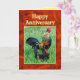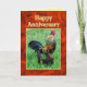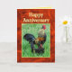 Carte Joyeux Anniversaire Coq et Poule Plumes Rouges