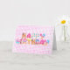 La crème glacée grignote en joyeux texte d'anniversaire sur en vichy blanc et rose.