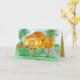 Une carte d'anniversaire de maison heureuse d'un agent immobilier décorée avec une maison élégante dans une région côtière du sud avec des fleurs colorées dans le jardin avant et des palmiers peints à l'aquarelle. L'intérieur a une teinte chaude dorée jaune coordonnée et vous pouvez personnaliser le texte pour répondre à vos besoins.