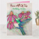 Votre femme spéciale sera ravie d'un joyeux anniversaire colibri BIG carte créée à partir de ma peinture aquarelle originale, Les cônes roses vifs ajoutent une jolie image de jardin à l'oiseau doux minuscule.