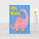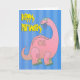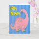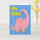 Un dinosaure Gros Rose mange une feuille, avec un message d'anniversaire sur un arrière - plan bleu.
