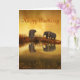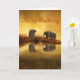 Belle photo d'un groupe d'éléphants asiatiques prise en Thaïlande sous le soleil couchant. L'éclairage de cette photo crée une ambiance rétro vintage. Message Joyeux Anniversaire à l'intérieur.