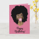 Célébrez son anniversaire avec cette beauté naturelle et son fabuleux "fro, pop bubblegum rose. Vous pouvez customiser plus loin avec votre propre message. Dans la carte on dit "HEUREUX ANNIVERSAIRE !"