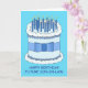 Un grand gâteau d'anniversaire bleu et blanc recouvert de bougies éclairées et posé contre un arrière - plan bleu vif. Les mots "Joyeux anniversaire Fils-en-Belle Fils" accompagnent l'image.