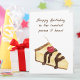 Savourisez l'indulgence d'une illustration aquarelle mettant en vedette un délicieux gâteau au fromage avec un coulis de chocolat décadent et une cerise sur le dessus. Avec le bouton "Personnaliser", personnalisez les messages intérieur et extérieur pour le rendre vraiment sincère. Choisissez votre police et votre couleur souhaitées, ou optez pour une carte d'anniversaire numérique pour une livraison rapide. Faites plaisir à quelqu'un de spécial avec ce message de félicitations délicieux et personnalisable !