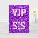 Carte de voeux avec un design imprimé moderne avec des étoiles éparpillées sur un motif stylisé "look paillote" et "VIP SIS" écrit dans les tons violet et lilas. Un design personnalisable pour personnaliser avec votre propre texte, images et idées. Veuillez noter qu'il s'agit d'une image art numérique imprimée. Le produit ne brille pas ou ne contient pas de parties scintillant ou de paillettes réelles.