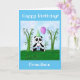Célébrez la journée spéciale de votre petit-fils avec cette adorable carte d'anniversaire avec un mignon panda bébé entouré d'une forêt de bambou, ballons et cadeaux. Customisez-le pour votre petite-fille ou ajoutez leur nom pour une touche personnalisée. Parfait pour les enfants, cette carte fantaisiste apporte des voeux joyeux et un sens de l'émerveillement à leur fête d'anniversaire. Rendre leur journée inoubliable !