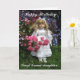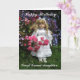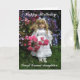 Joyeux anniversaire grand-fille texte sur une belle scène de jardin avec une jolie poupée qui tient rose