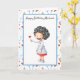 Carte de vœux d'anniversaire mignonne avec une illustration d'un médecin ou d'une infirmière aux cheveux noirs. Illustré et conçu par Patricia Alvarez.