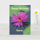 Un beau nénuphar rose vibrant avec le joyeux anniversaire de mots au-dessus de lui. Ajoutez le nom du destinataire au-dessous de lui.
