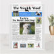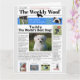 Quelle belle carte pour n'importe quel amoureux des chiens dehors : Cette carte de titre de journal est entièrement personnalisable pour changer le nom et la photo principale de la page d'accueil 'Le Meilleur Chien du Monde' avec une interview drôle avec votre chien sur la couverture. Changez aussi la date de l'anniversaire de quelqu'un, de l'anniversaire ou de l'anniversaire de son chien pour le rendre spécial! Modifiez ou supprimez également les logos de la patte et la couleur de l'arrière - plan. Jouez avec et amusez-vous à le faire comme vous le souhaitez. Disponible en 3 tailles :