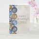 Simple carte pour Papa pour son anniversaire a des cercles aquarelle dans des couleurs masculines de bleu, gris et marron sur un fond beige distressé.