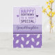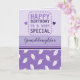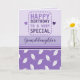 Personnalisez cette carte de voeux d'anniversaire pour votre petite-fille, ou changez pour convenir. Joyeux anniversaire à une petite-fille très spéciale. Conçu en violet et lilas avec un motif feuille et des coeurs d'amour.