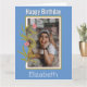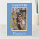 Une carte d'anniversaire photo personnalisée et élégante avec une jolie bordure bleu blanc avec marguerite rose pour l'image.