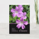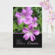 Bonne carte de voeux pour un cousin. Card a une image de Cranesbill geraniums dans les tons violet et lavande. Carte de voeux botanique à thème fleuri. Copyright © Shoaff Ballanger Studios.