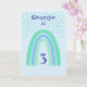 Ce design d'arc-en-ciel boho doux peut être personnalisé avec le nom et l'âge. Jolies couleurs turquoise, bleu & vert. Le verset intérieur peut être conservé, modifié ou supprimé en suivant l'invite "personnaliser".