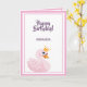 Carte Joyeux Anniversaire rose cygne princesse sur blanc