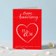 Marquez un anniversaire mémorable avec cette carte élégante. Avec un arrière - plan rouge vif, un coeur central et un monogramme personnalisable en écriture blanche, cette carte peut être personnalisée avec des noms, des dates, et un message sincère pour mari spécial, femme, partenaire ou pour un couple heureux !
